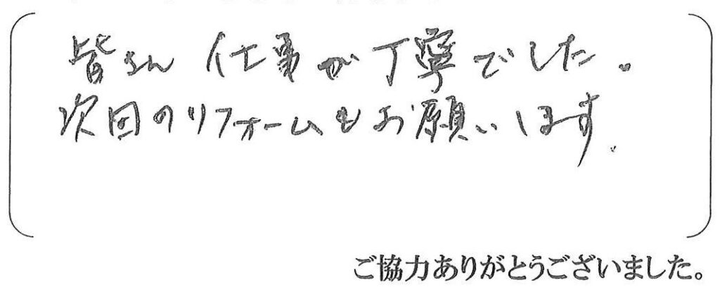 この度は外壁塗装、屋根重ね葺き工事をお世話になりましてありがとうございました。今後共よろしくお願い致します。