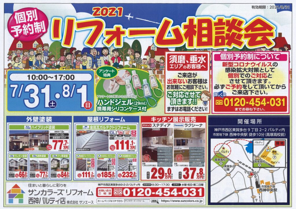 7/31(土)8/1(日)西神パルティ店にてリフォーム相談会を開催いたします。 ...