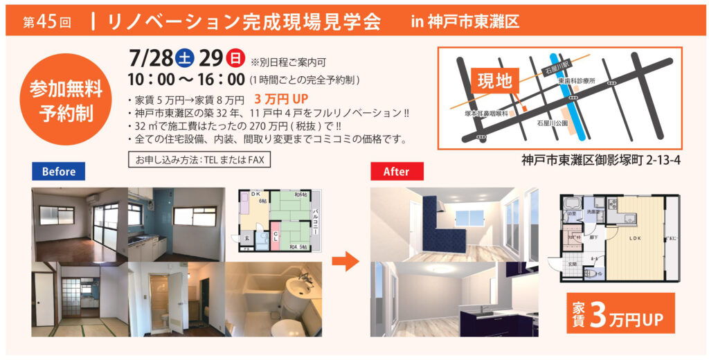 第45回オーナー様向け リノベーション完成現場見学会開催 日時:7/28(土)・...