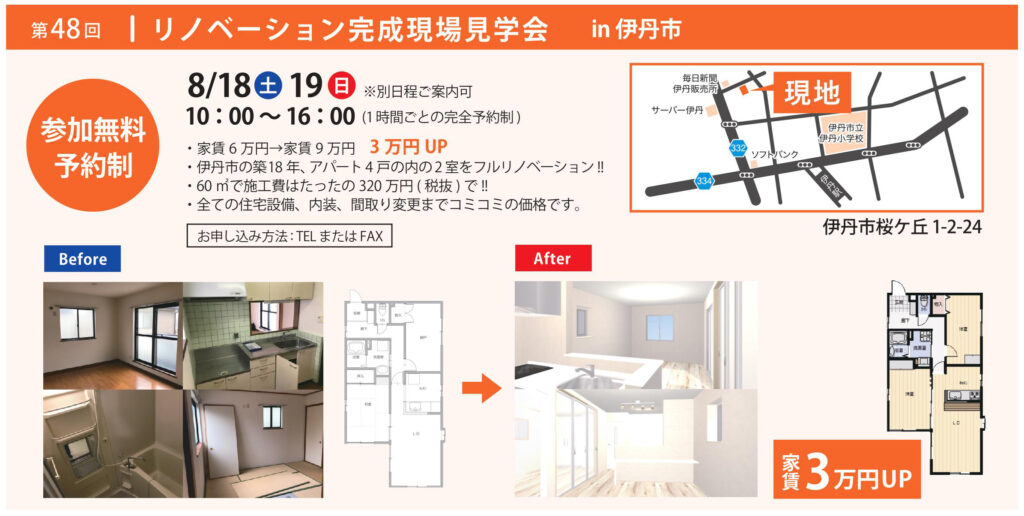 第48回オーナー様向け リノベーション完成現場見学会開催 日時:8/18(土)・...