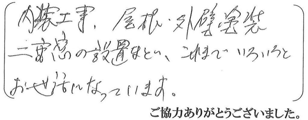 「火災保険の見直し」や「水漏れなどのトラブル時に保険請求のお手伝い」「リフォームローンなどの資金面のサポート」