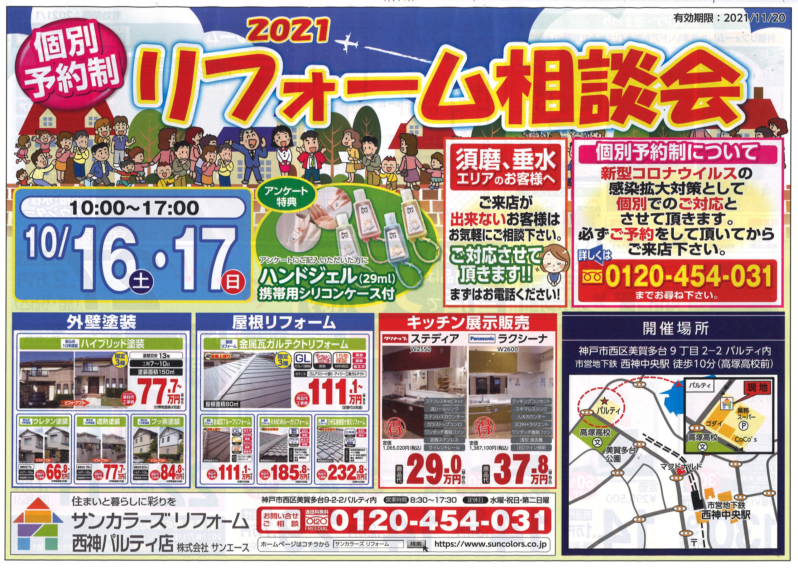 10/16(土)10/17(日)西神パルティ店にてリフォーム相談会を開催いたします。