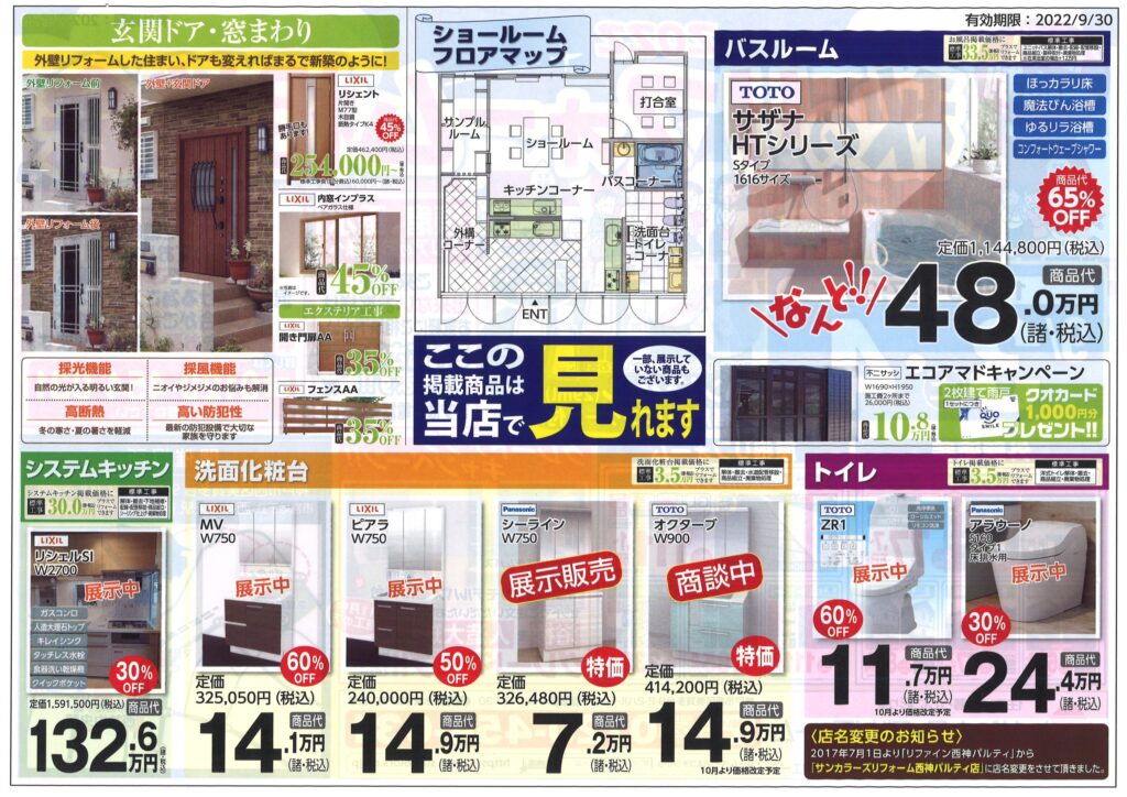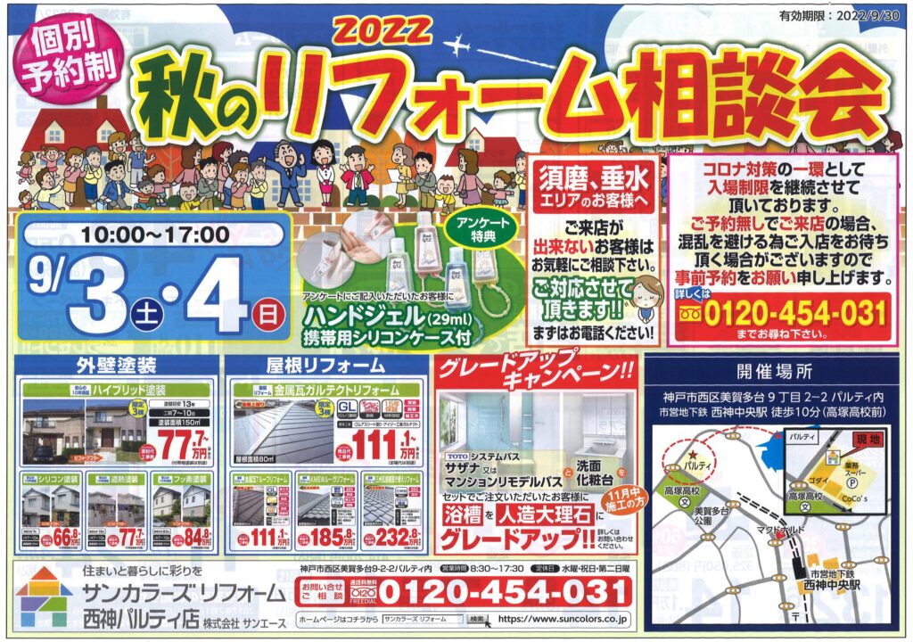 9/3(土)9/4(日)西神パルティ店にてリフォーム相談会を開催いたします。