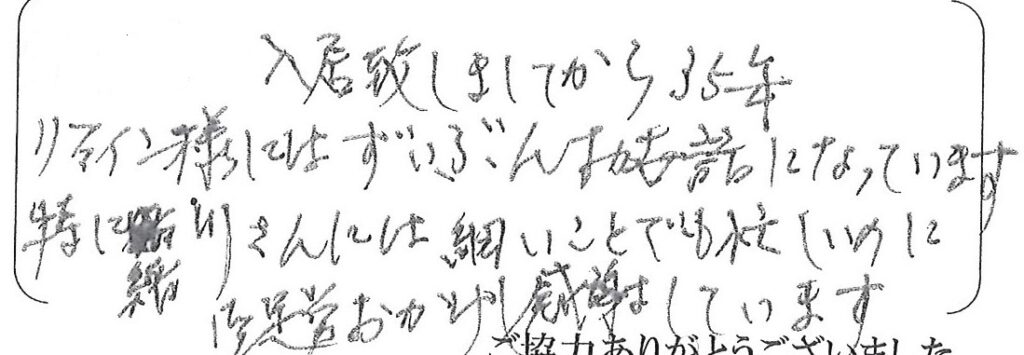 はじめてお世話になってからもう25年程のお付き合いとなりますが、ホームドクターとして今後共よろしくお願い致します。