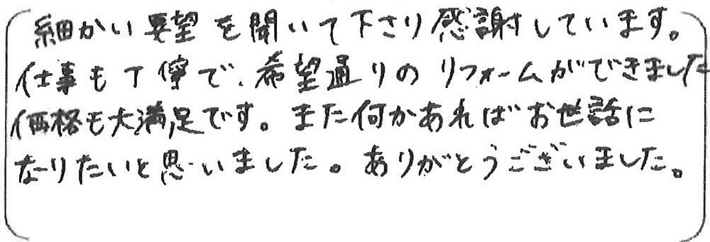 奥様のご希望もハッキリされておりましたので、当社コーディネーターとのお打ち合わせもスムーズにさせて頂けとても良い仕上がりになりました。