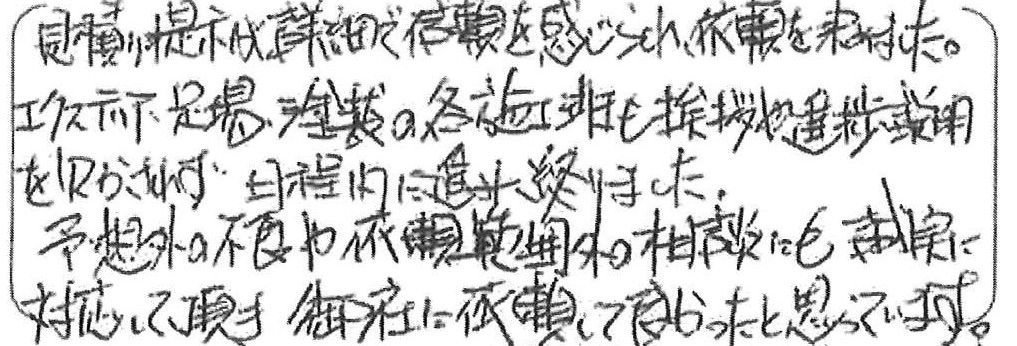 このたびは外壁・屋根塗装工事のご依頼頂きまして誠にありがとうございました。増築部のサイディングと母屋の外壁色とのバランスが取れて綺麗に仕上がりました。今後ともよろしくお願いいたします。