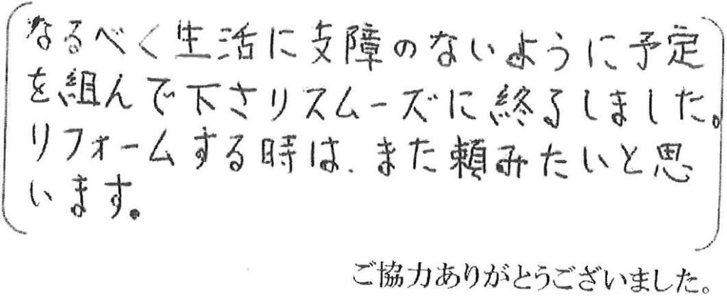 お客様からのご要望がハッキリしておられたので、よくご相談出来ました。
