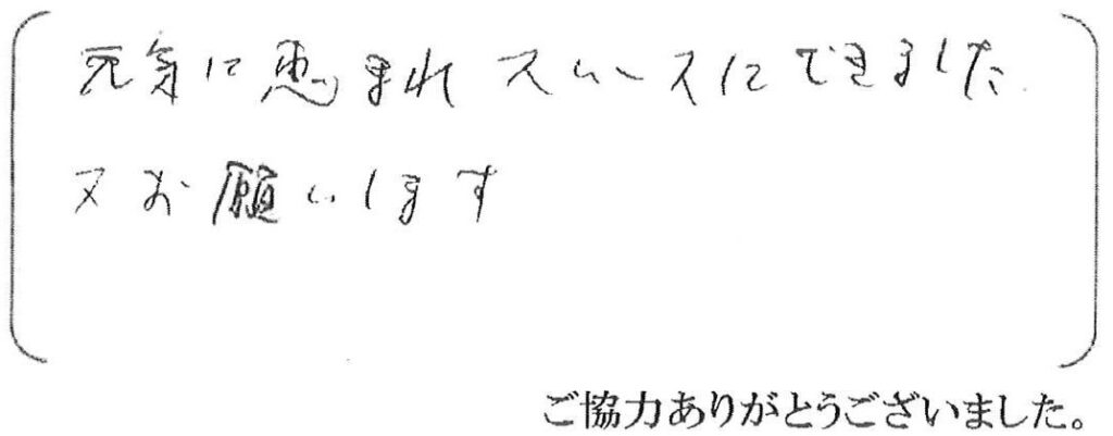 工事しやすいようご配慮頂き、スムーズに進みました。有難うございました。