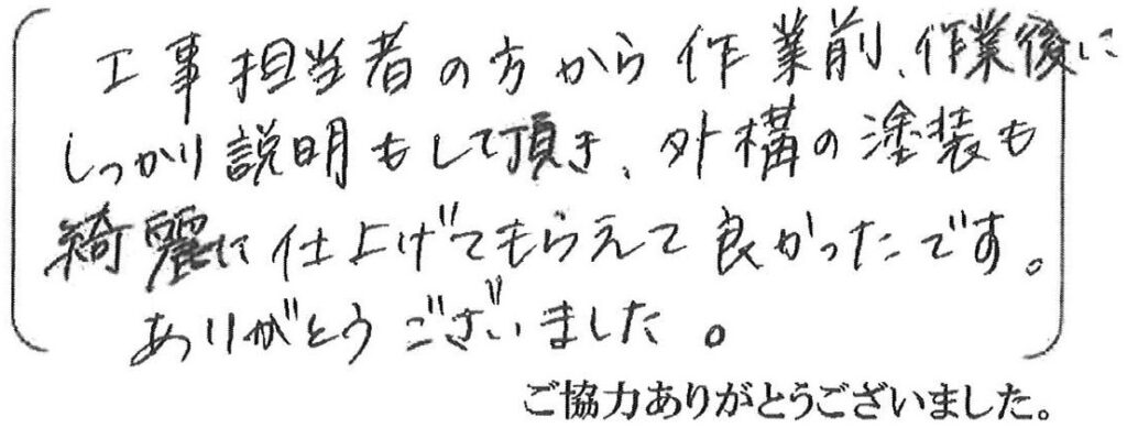 今回は塀の塗装をお声掛けいただき誠にありがとうございました。14年前に新築の際に初めて外構工事をさせていただきました。