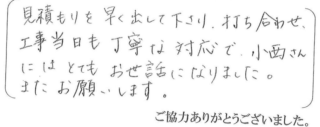 いつもお世話になっております。今回は給湯器・トイレの取替のご依頼ありがとうございました。どんな小さな事でも駆けつけますので、今後ともよろしくお願い致します。