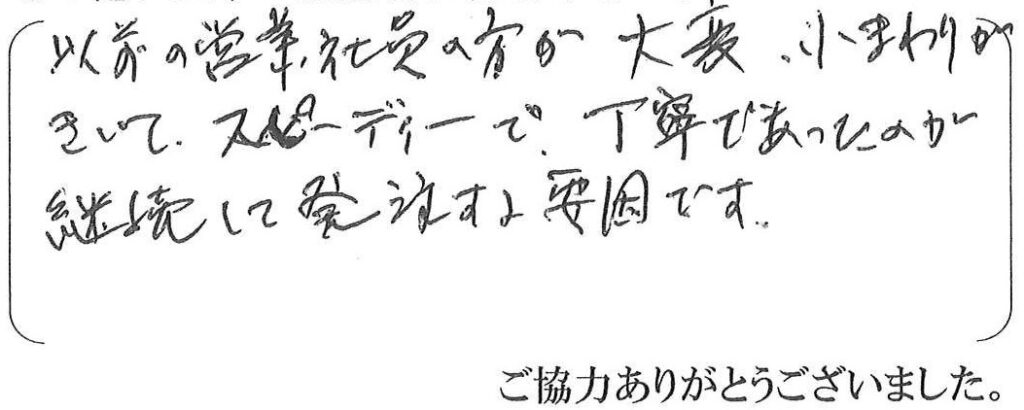 この度は、給水管保温テープ巻補修のご依頼誠に有難うございました。冬前に施工が出来、凍ることがないようになったと思います。今後共、宜しくお願い致します。