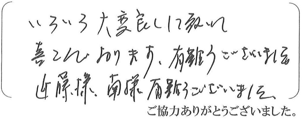 この度は工事のご依頼を頂き、ありがとうございました。長年のお付き合いをさせて頂いてますお客様です。今回は塗装工事と給湯器の工事をさせて頂きました。また何かございましたら遠慮なくお声掛け下さい。今後共よろしくお願い致します。