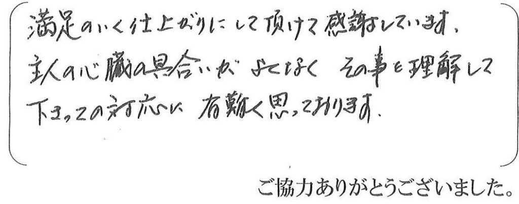 この度は洋室内装工事のご依頼ありがとうございました。ご満足頂けて大変嬉しく思います。今後とも宜しくお願い致します。