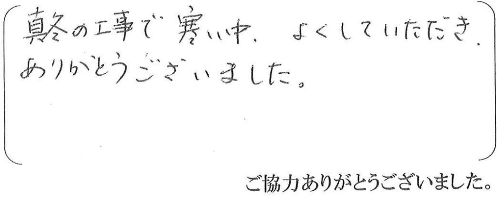 この度はキッチン、浴室、洗面、外部工事をご用命頂きました。お客様のご協力を頂きながらしっかり工事が出来たと思います。誠にありがとうございました。