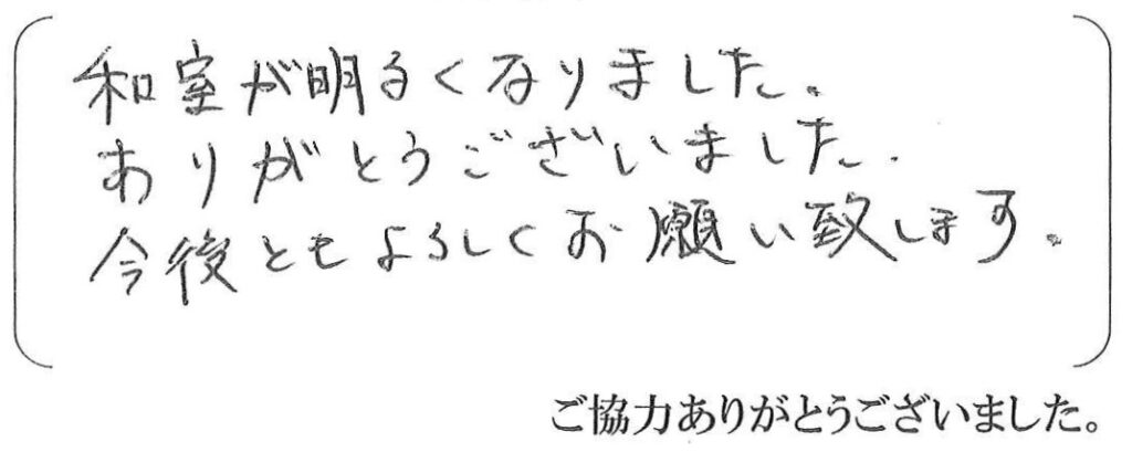 お住まいを購入され、そのリフォームのお手伝いをさせて頂きました。この後も色々ご相談頂いておりますので、末長いお付き合いをさせて頂きたいと思っております。