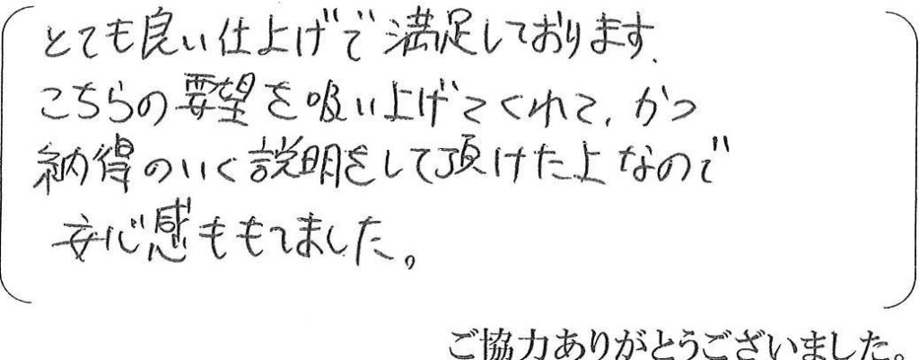 外壁・屋根塗装・ガレージ拡張工事では大変お世話になりました。新築のようなキレイな仕上りになり、大変嬉しく思っています。今後共、どうぞよろしくお願い致します。