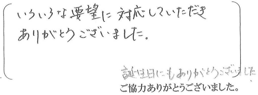 マンション全面改修工事のご依頼誠に有難うございました。各住宅設備商材の納期が遅れる中でご迷惑もお掛け致しましたが、お施主様のご協力も頂き完成ができてよかったです。少しお引越しが延びましたが新しくなったお家での生活を満喫して頂けますと嬉しいです。今後共宜しくお願い致します。