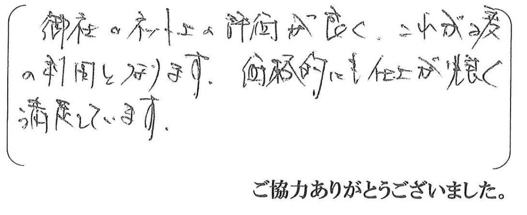 この度は浴室・洗面所工事のご依頼を頂き誠にありがとうございました。2度目のご依頼を賜りましたこと、感謝申し上げます。今後共よろしくお願い致します。