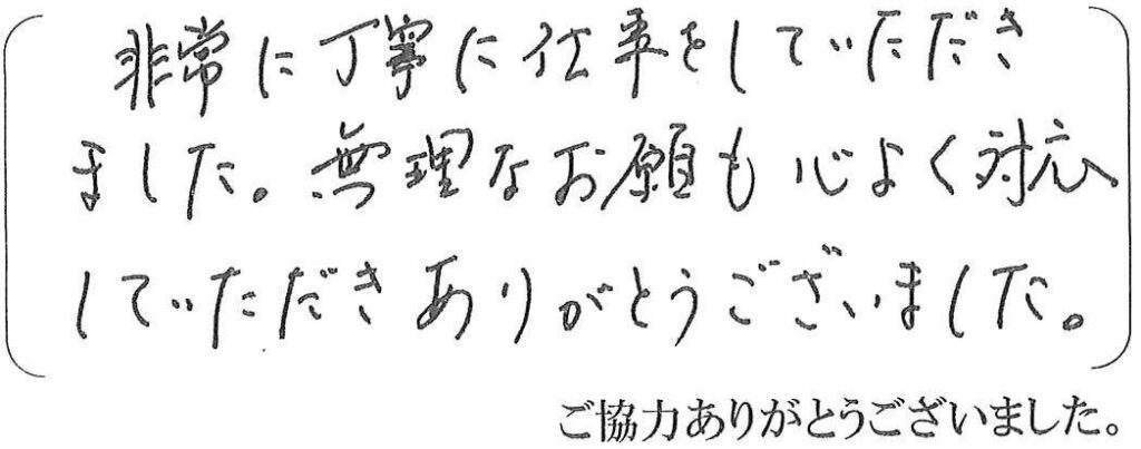 内装工事でお伺い致しました。生活をされていますといろいろ気になる所が出てくると思います。出来る事は併せて対応させて頂きますので仰って下さい。