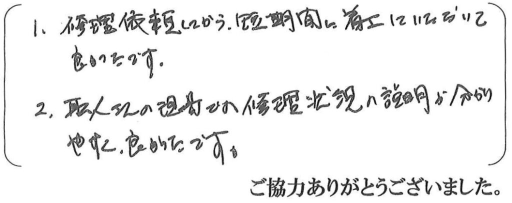 この度は、屋根工事のご依頼ありがとうございました。弊社職人含め、事前のお打ち合わせのお時間を頂き、スムーズ工事をする事ができました。是非とも次回も弊社までお電話ください。