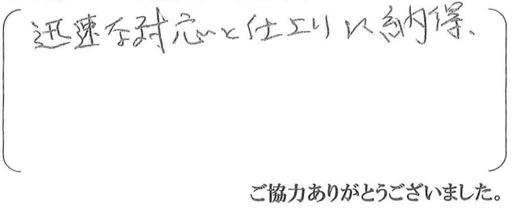 今回の玄関ドア交換も当社にご依頼頂き、ありがとうございました。色柄について迷われていましたが、お喜び頂き、良かったです。今後とも宜しくお願い致します。