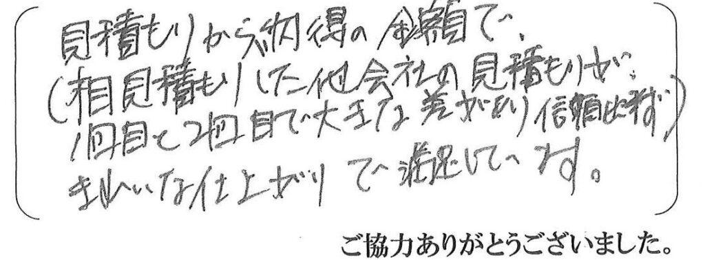 この度はエコカラット工事をご依頼賜りありがとうございます。ご満足頂き安心致しました。エコカラットの調湿効果のご感想も是非お聞かせ下さいませ。今後共よろしくお願い致します。