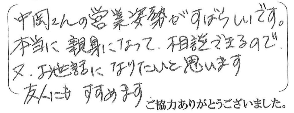 この度は水廻りと内装改修のご依頼を頂き誠にありがとうございました。初めての内部リフォームで数ある中から当社をお選び頂き、精一杯のご提案をさせて頂きました。また、工事中野ご協力もあり大変仕事もし易く職方も皆最高のパフォーマンスを発揮出来ました。今後アフターフォローもさせて頂きますのでお困り事がございましたら何なりとお申し付け下さいませ。今後とも宜しくお願い致します。