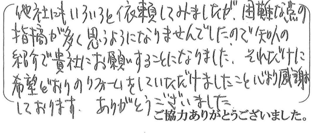 この度の窓リフォームでは大変お世話になりました。お喜び頂けたご様子で、私も大変うれしいです。又、何かお困り事がございましたら、お電話頂けると幸いです。