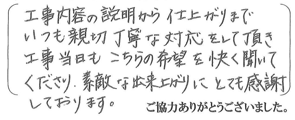 いつもサンカラーズリフォームにご依頼下さいまして、ありがとうございます。今回は内窓を取付けさせて頂きました。寒い冬が来る前に工事が間に合いホッとしています。今後共、どうぞよろしくお願い致します。