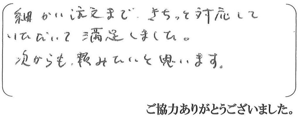 今回は浴室、洗面、トイレなどの設備、内外手すり、給湯器など多岐にわたりご用命いただきました。工程表に基づきしっかりご説明しながら進めさせて頂き、ご理解頂けたと思います。またお客様からもご協力いただけ、我々も気持ち良く工事する事ができ、感謝しております。この度は誠にありがとうございました。