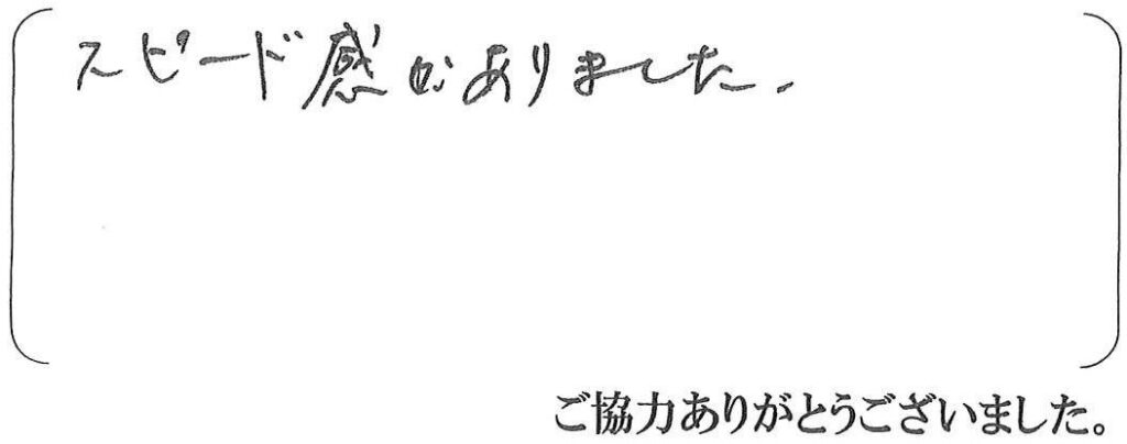 いつもリフォーム工事のご依頼下さいましてありがとうございます。お困りのところ、早々にご対応させて頂く事が出来、ホッと安心しております。日程のご協力も頂きありがとうございました。今後共どうぞよろしくお願い致します。
