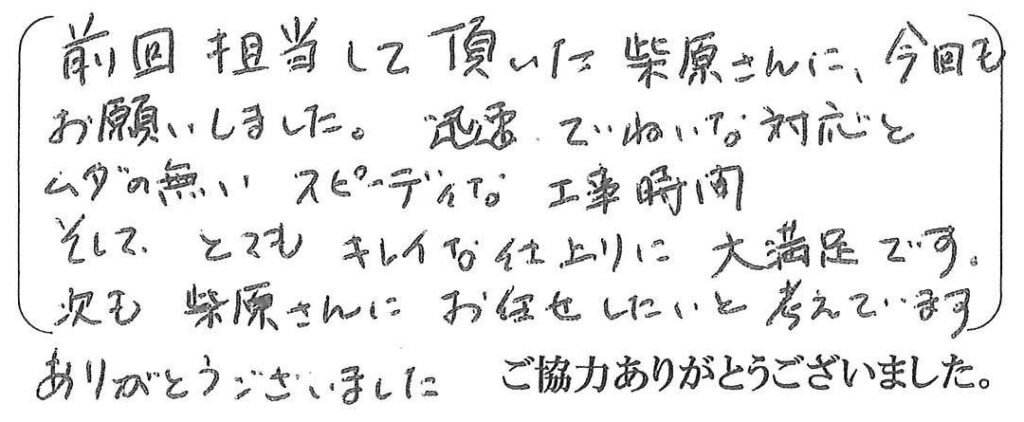 キッチン、システムバス工事に続き、この度はトイレ工事をご依頼下さいましてありがとうございました。設備、内装共に洗面職人による施工でスムーズに仕上がり良く完了することが出来ました。今後共サンカラーズリフォームに何でもお気軽にご相談ください。