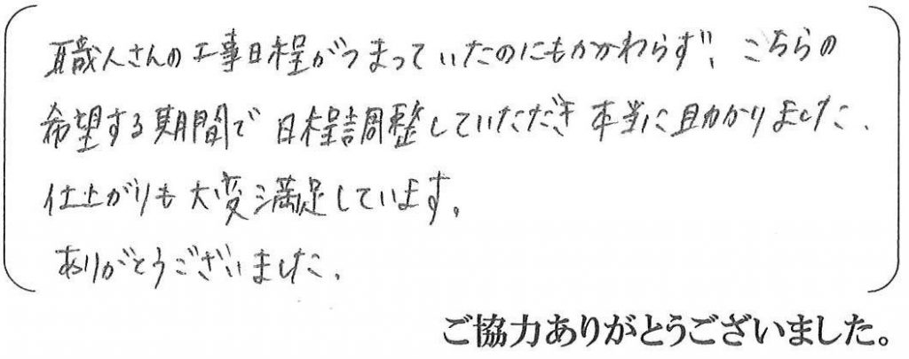 この度はトイレ取替工事をご依頼頂き、ありがとうございました。何とかご希望の日程で工事を終わらせることができて良かったです。今後共、どうぞよろしくお願い致します。