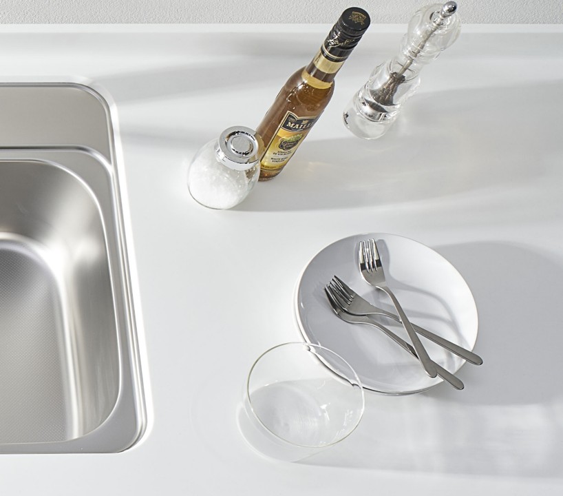 キズ、水アカがつきにくい 高機能シンク。 水音の静けさは図書館レベル。