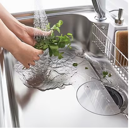 シンクの中のお手入れもシンクまわりの片付けも、スキッとはかどるシンクです。 汚れがスムーズに流れる底面形状とゆとりのポケットサイズで、2つの「スキット!」を実現しました。