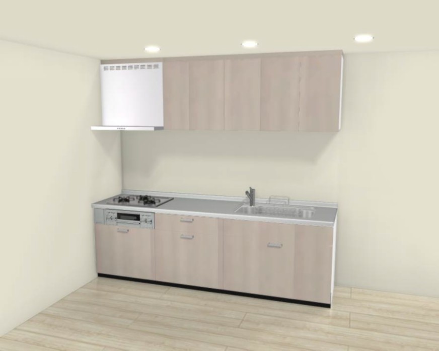 ステンレスワークトップ/トレーボード仕様/ フラット型レンジフード/ シングルレバー水栓