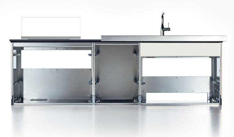 骨組みそのものをステンレスでつくりあげた、ステンレスキャビネット構造。 この構造が、カビ、錆び、臭いをよせつけません。 細かいところまで、衛生面やお手入れのしやすさに配慮した キャビネットです。