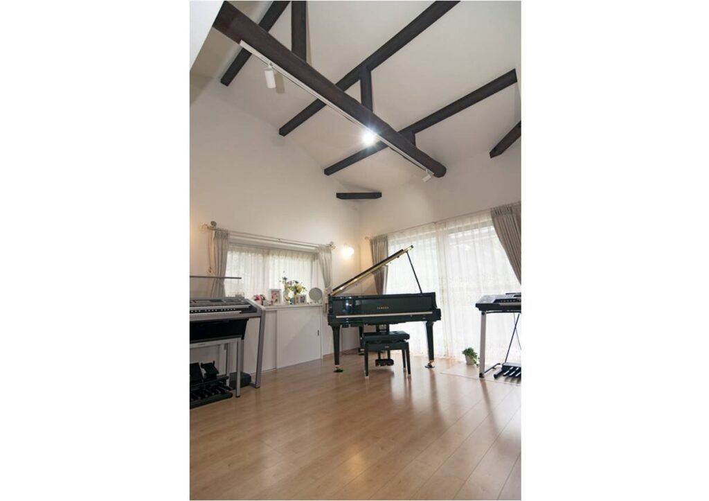 建具は2400の高さにし、構造梁を見せ大空間を計画。キッチンは対面にし、明るく広がりのある部屋に。