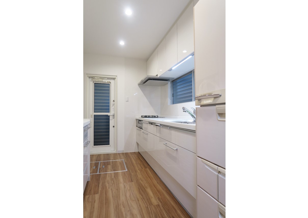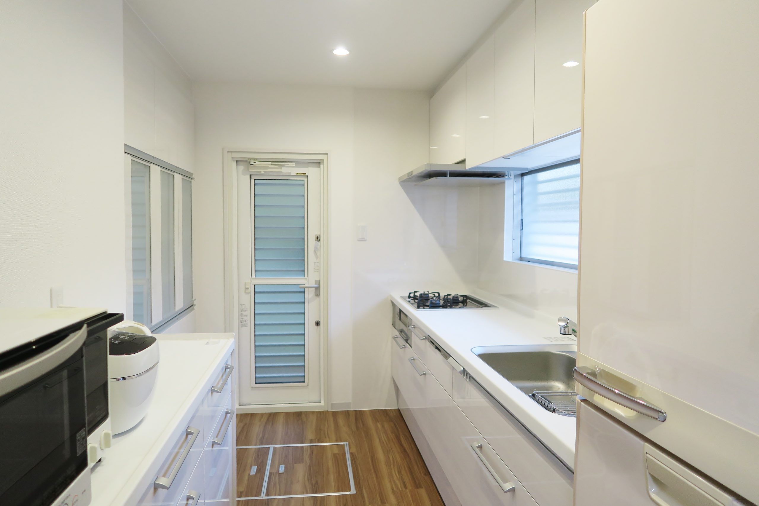 ホワイトベースでスッキリ広々明るいキッチン室に