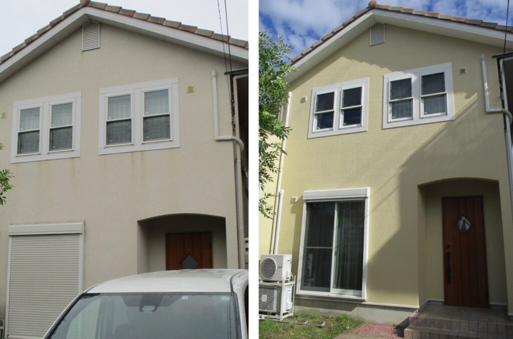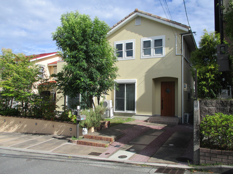 クリームイエロー色と窓サッシの白がとてもバランスよく