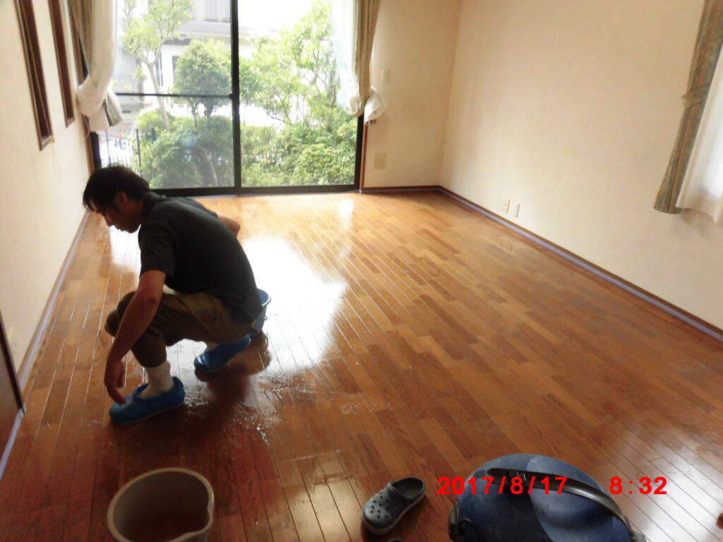 ワックスをかけてもすぐにポロポロとめくれてくる、というお悩みから始まったこの工事。