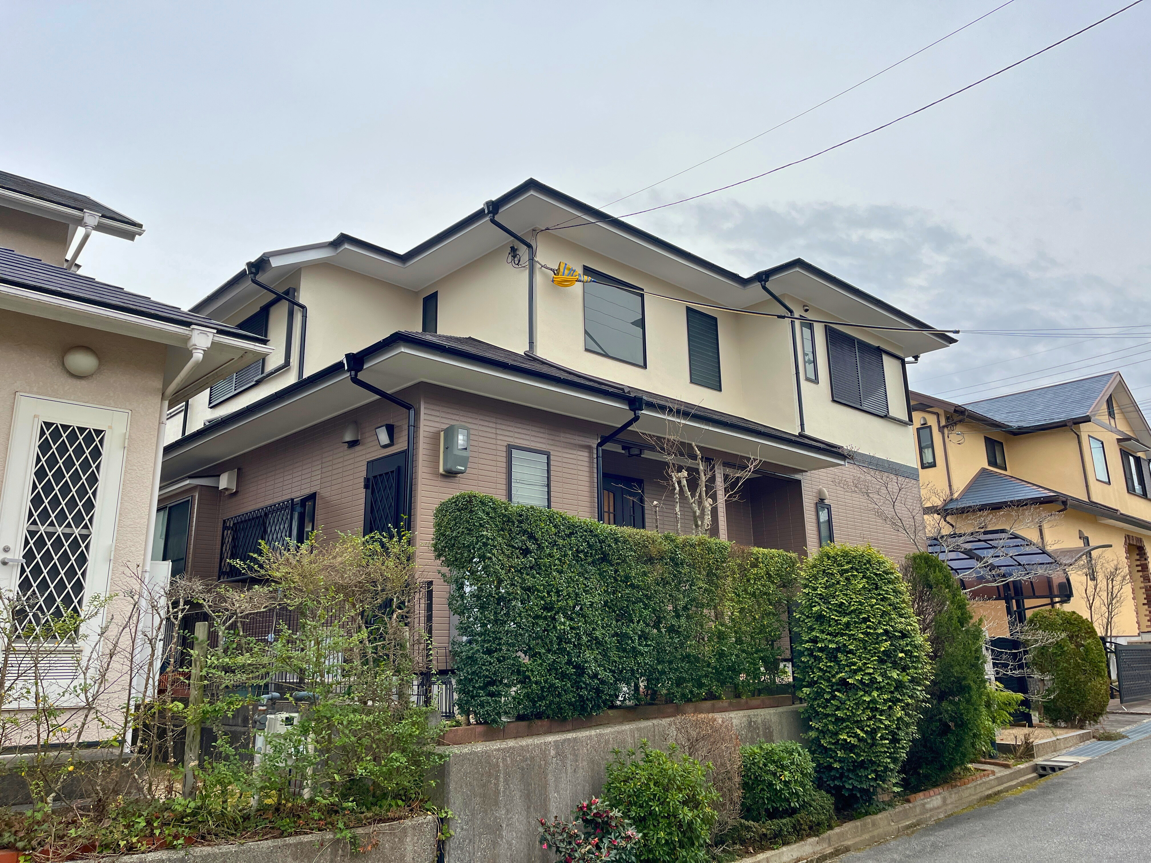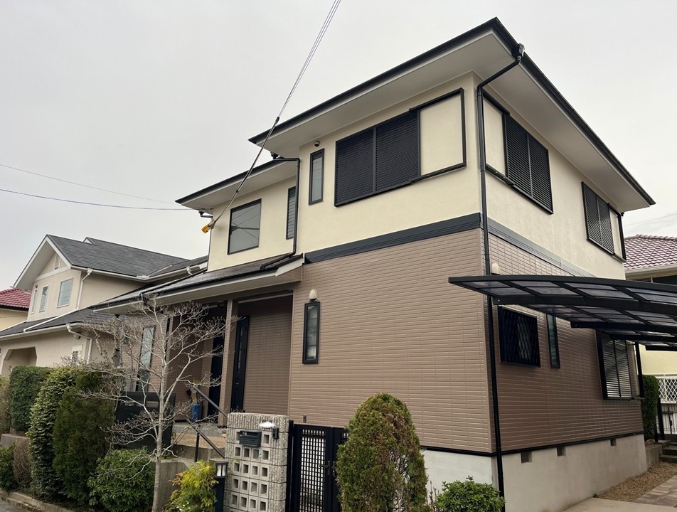 1階部分には日本ペイント パーフェクトトップ ND-342番、2階部分には日本ペイント パーフェクトトップ ND-108番の塗料を採用し、続く安心とオシャレな外観を同時に叶えられました。