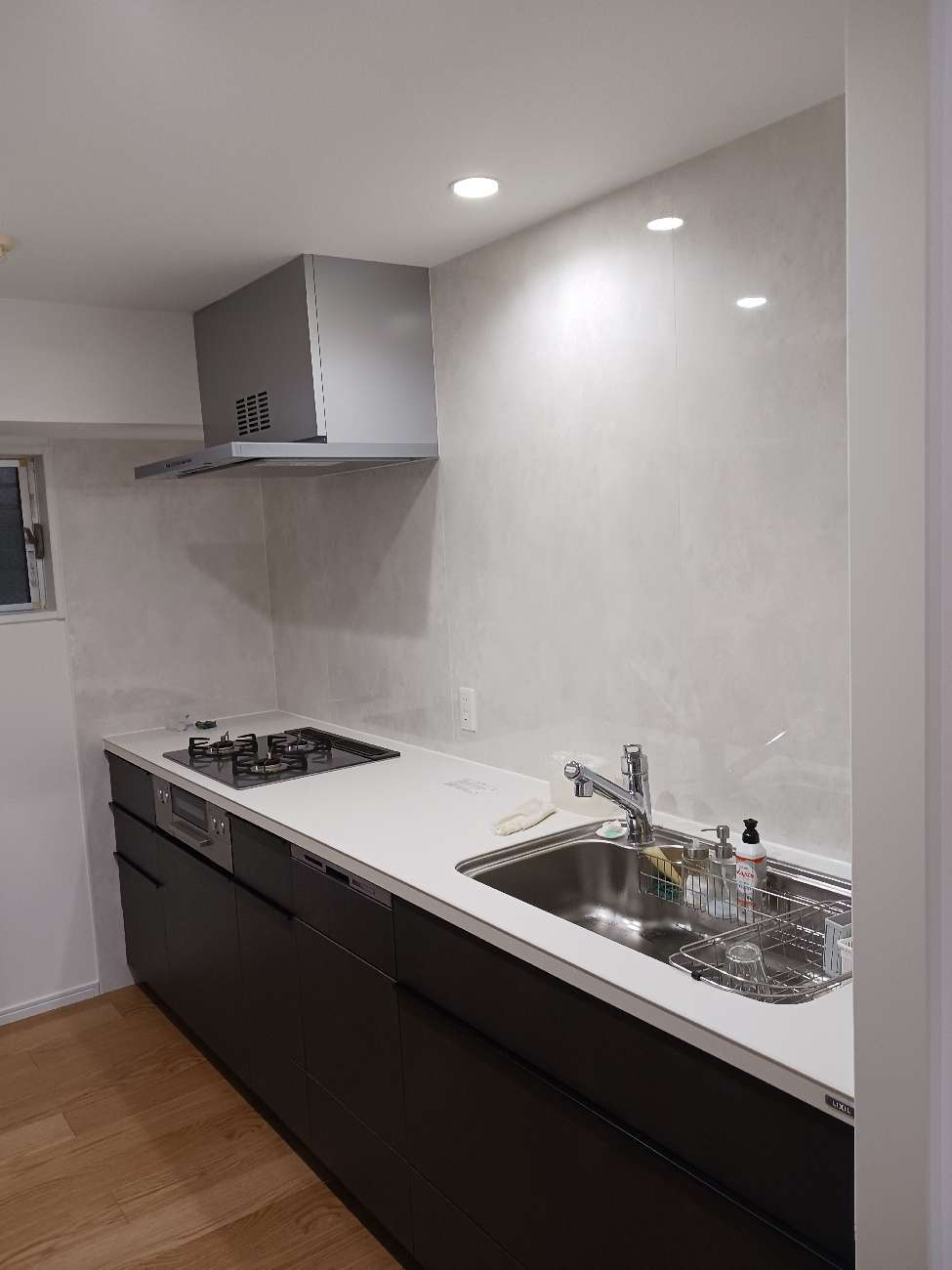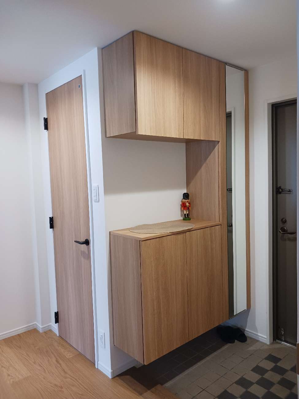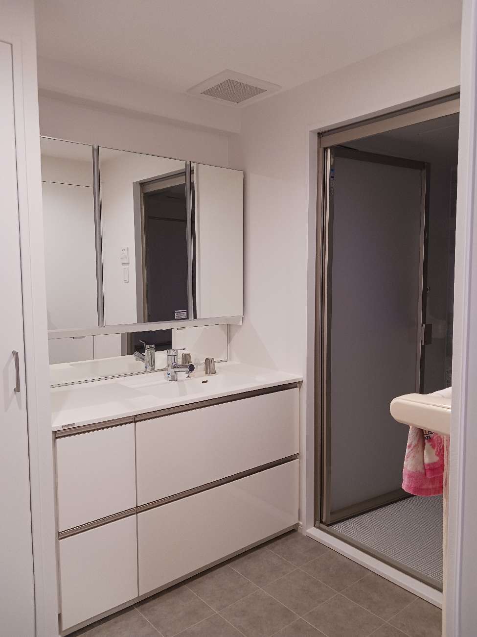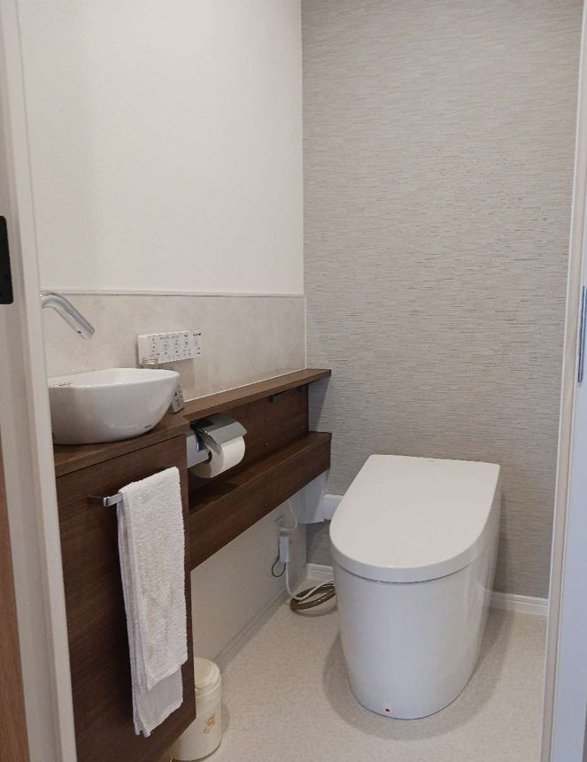 床や建具、水まわりもすべて一新し、白をベースにオーク色×グレー色で